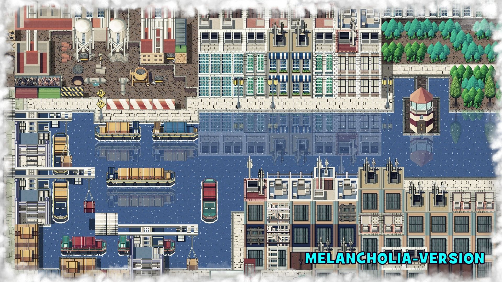 The focus of the pixel set is the creation of a city and its various sectors. From the historical center, downtown, port to the promenade and construction site where, as a new major, you can start building new skyscrapers.